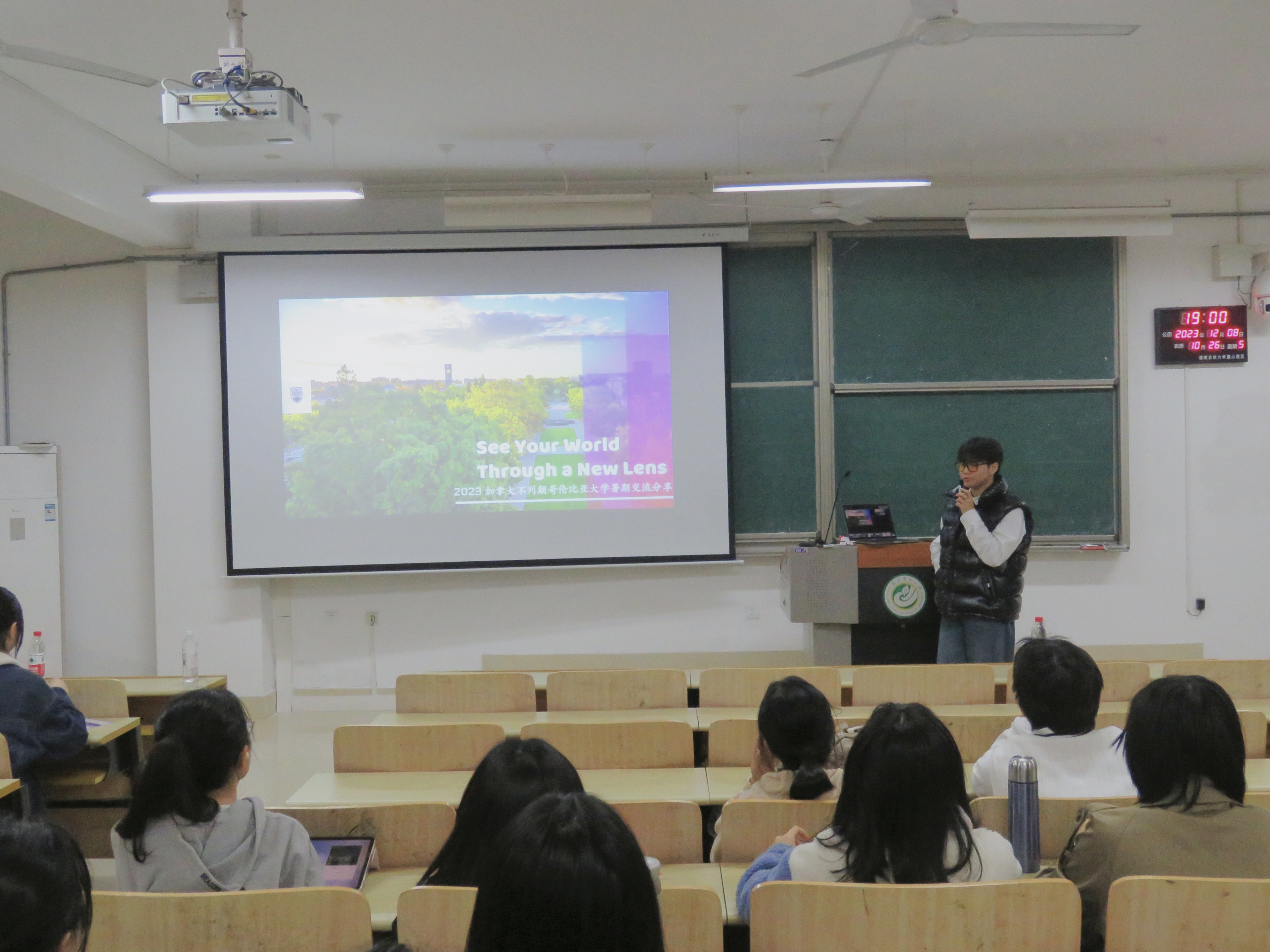 黄宇涛同学以其暑假期间参加加拿大不列颠哥伦比亚大学夏令营的经历,分别就前期准备工作、安全注意事项、亲身学习经历进行分享。他认为这是一次“锻炼口语,开阔眼界,增强跨文化交际能力”的宝贵体验。