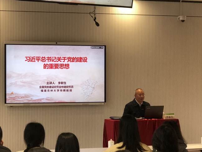 聘任仪式上,兰思仁依次为李新生、郭若平颁发了全职教授聘书并佩戴校徽。聘任仪式后,李新生教授为师生作了题为“习近平总书记关于党的建设的重要思想”的学术报告。