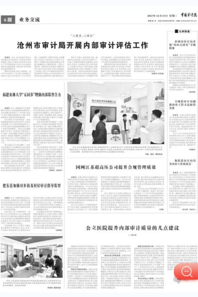 2023年12月11日,由中华人民共和国审计署主管主办的《中国审计报》第六版以“‘五同步’增强内部监督合力”为题,报道我校党委推行的“巡审同步”工作机制特色做法。另悉,近日,我校审计委员会办公室、审计处获福建省内部审计协会“全省内部审计先进集体”荣誉称号。