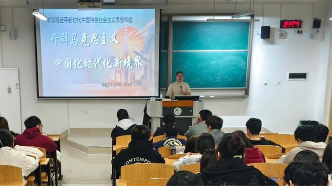 导师团成员马克思主义学院青年教师赖淑芳做《开辟马克思主义中国化时代化新境界》主题报告。赖淑芳围绕习近平新时代中国特色社会主义思想的发展历史、时代背景以及主要内容、马克思主义中国化时代化的内涵、马克思主义基本原理同中华优秀传统文化相结合三个方面声情并茂、深入浅出地解读习近平新时代中国特色社会主义思想。