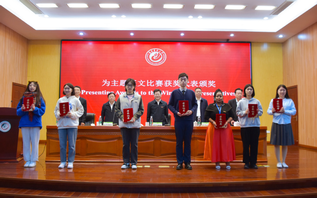 为征文比赛获奖者颁奖