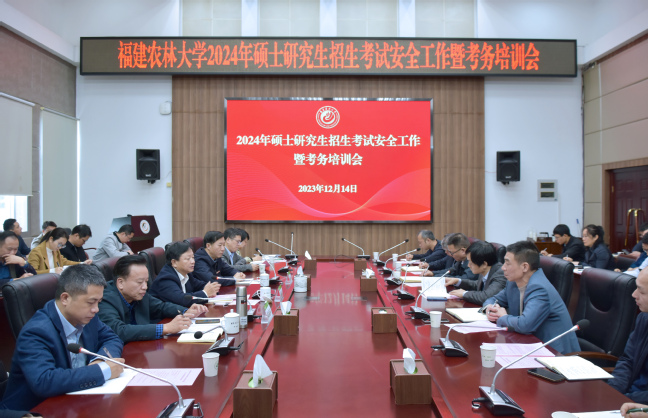 12月14日上午,我校在明德楼武夷厅召开2024年全国硕士研究生招生考试安全工作会,校长兰思仁、校党委副书记曾华平、副校长郑宝东,相关职能部门及各学院负责人出席会议,郑宝东主持会议。