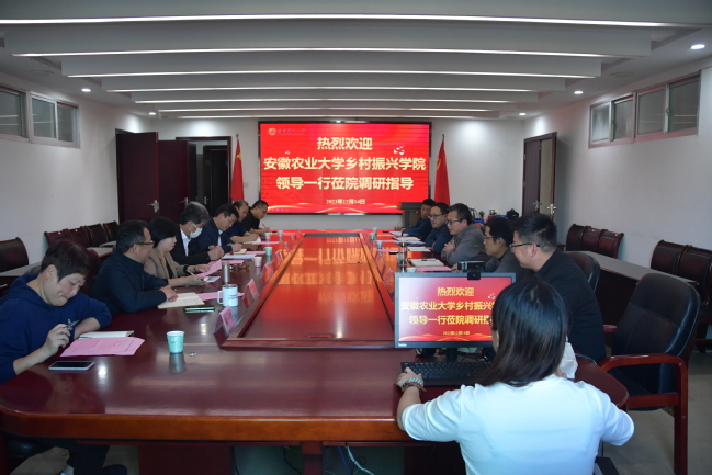 12月14日下午,安徽农业大学乡村振兴学院党总支书记张晓伟、继续教育学院院长胡启涛一行6人莅院调研,学院党政领导班子成员及相关科室负责人参加座谈会。执行院长苏时鹏主持会议。