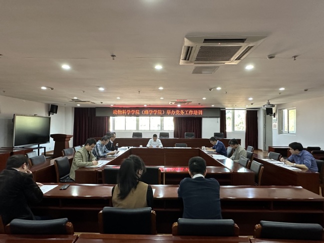 近日,动物科学学院党委在学院七楼会议室举办党务工作培训会。培训主讲人由学院党委副书记贺鹏担任。学院党委委员、政工干部、各支部书记参加会议。党委副书记(主持工作)修新田主持培训会。