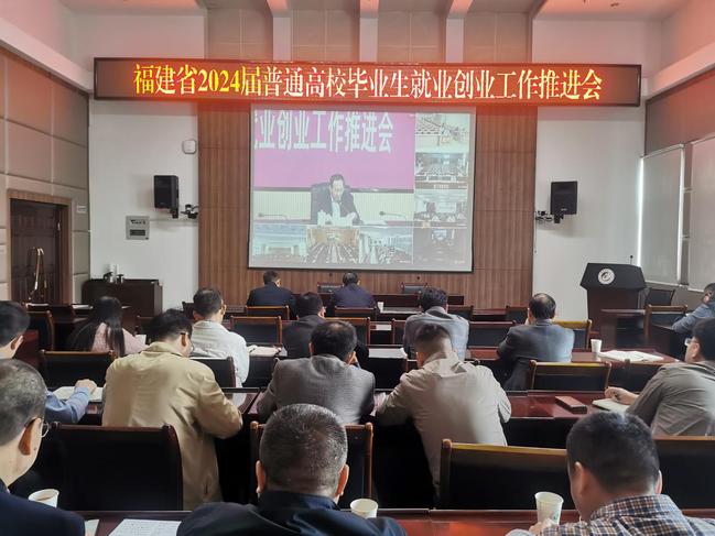 12月15日,省教育厅、省人社厅联合召开2024届福建省普通高校毕业生就业创业工作推进会,贯彻落实2024届全国普通高校毕业生就业创业工作视频会议精神和省委省政府工作要求,部署推进我省2024届普通高校毕业生就业创业工作。省委教育工委书记,省教育厅党组书记、厅长叶燊,省人社厅党组成员、副厅长陈国銮出席会议并讲话,省教育厅党组成员、副厅长李绚主持会议。我校在明德楼龙岩厅设分会场,校长兰思仁、校党委副书记曾华平、学工部、学生创新创业中心(合署)负责人及相关工作人员,各学院党委书记和副书记集中参会。