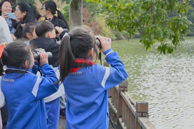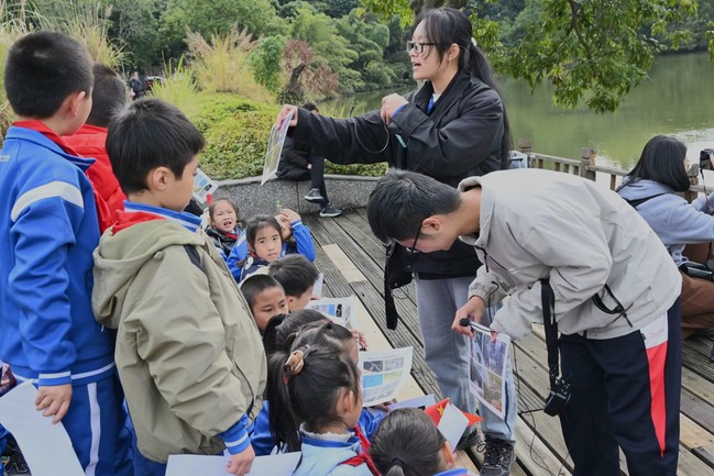 此次活动旨在以习近平新时代中国特色社会主义思想为指导,用实际行动践行习近平生态文明思想,牢固树立“绿水青山就是金山银山”理念,努力成为自然保护与动物保护的参与者、贡献者和引领者。在校内湿地公园,协会成员为20名来自仓山区第六中心小学的二年级学生科普湿地知识、讲解湿地重要性、介绍生活在湿地的鸟类,带领小学生们使用望远镜寻找观测鸟类。