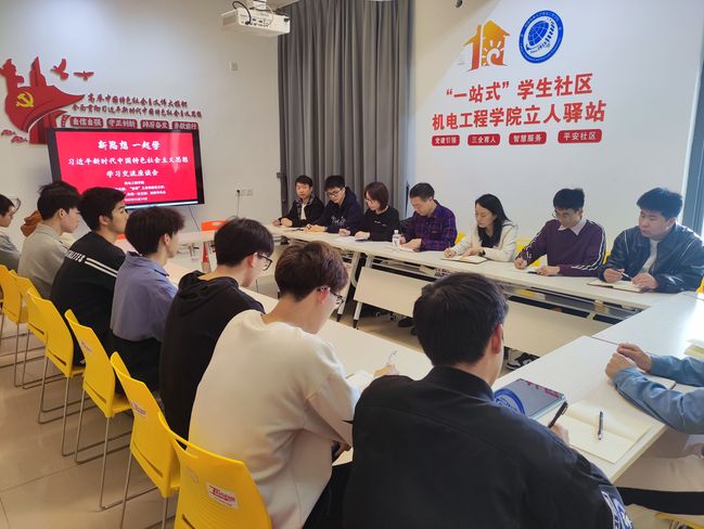 12月14日,机电工程学院在“一站式”学生社区立人驿站开展“新思想,一起学”主题学习交流会。学院党委书记陈为德、副书记杨莹、辅导员、学生社区党支部、“爱帮”义务维修党支部、车辆工程专业学生第一党支部、团委学生会主要骨干、青年代表近30人参加了学习交流会,会议由学院团委副书记唐琳婕主持。