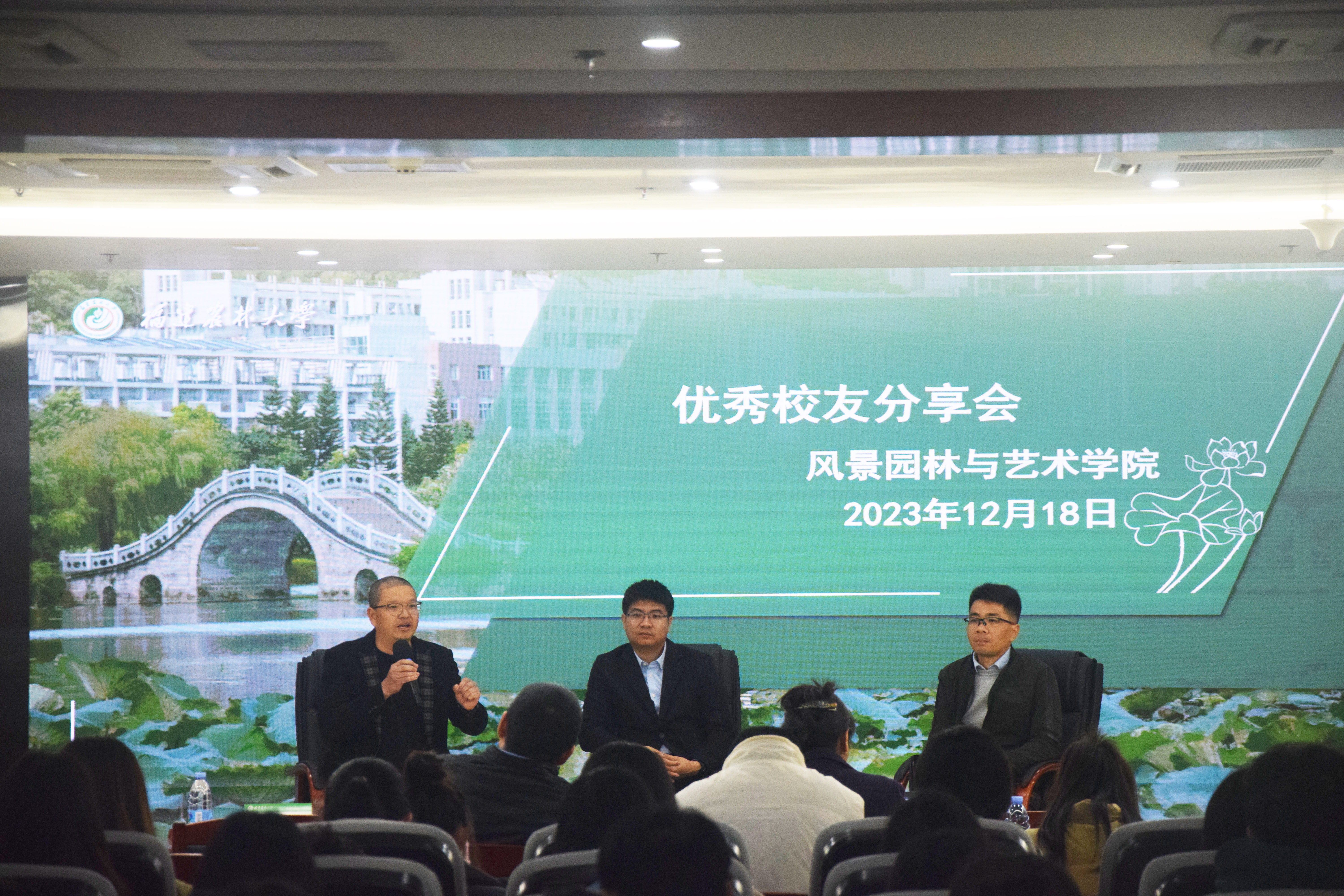 12月18日上午,风景园林与艺术学院于综合楼1204开展优秀校友典型报告会。会议邀请了学院优秀校友郑本立、林生土和方友铣进行分享交流。学院党委书记雷国铨,副院长(主持工作)彭东辉,党委副书记徐通明,副院长陈小英,副院长余坤勇,学院辅导员与师生共一百余人到场参会。