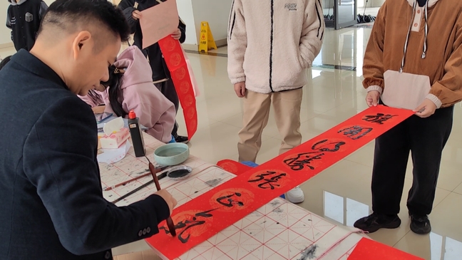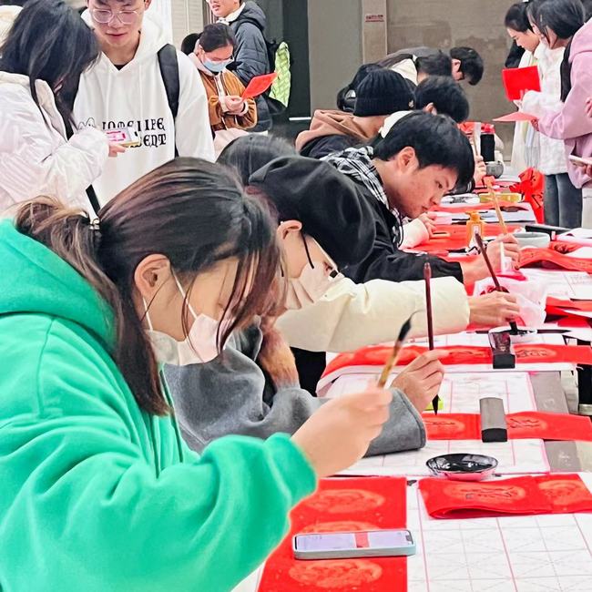 活动现场,冯辉荣老师挥毫泼墨,行云流水,以一副“旗开得胜张正气,尽展来鸿奔宏图”开笔,表达对于新一年的美好祝愿。书法协会同学们各展风采,用笔墨书寄托美好心愿。“承古纳今龙气度,兼容并蓄海襟怀”“八字精神,灿似春花呈异彩;九门气象,美如仙境沐朝霞”“爱筑长城龙翘首,德从上善水流春”……优美的中国文字和书法交相呼应,吸引了不少师生驻足观看鉴赏。