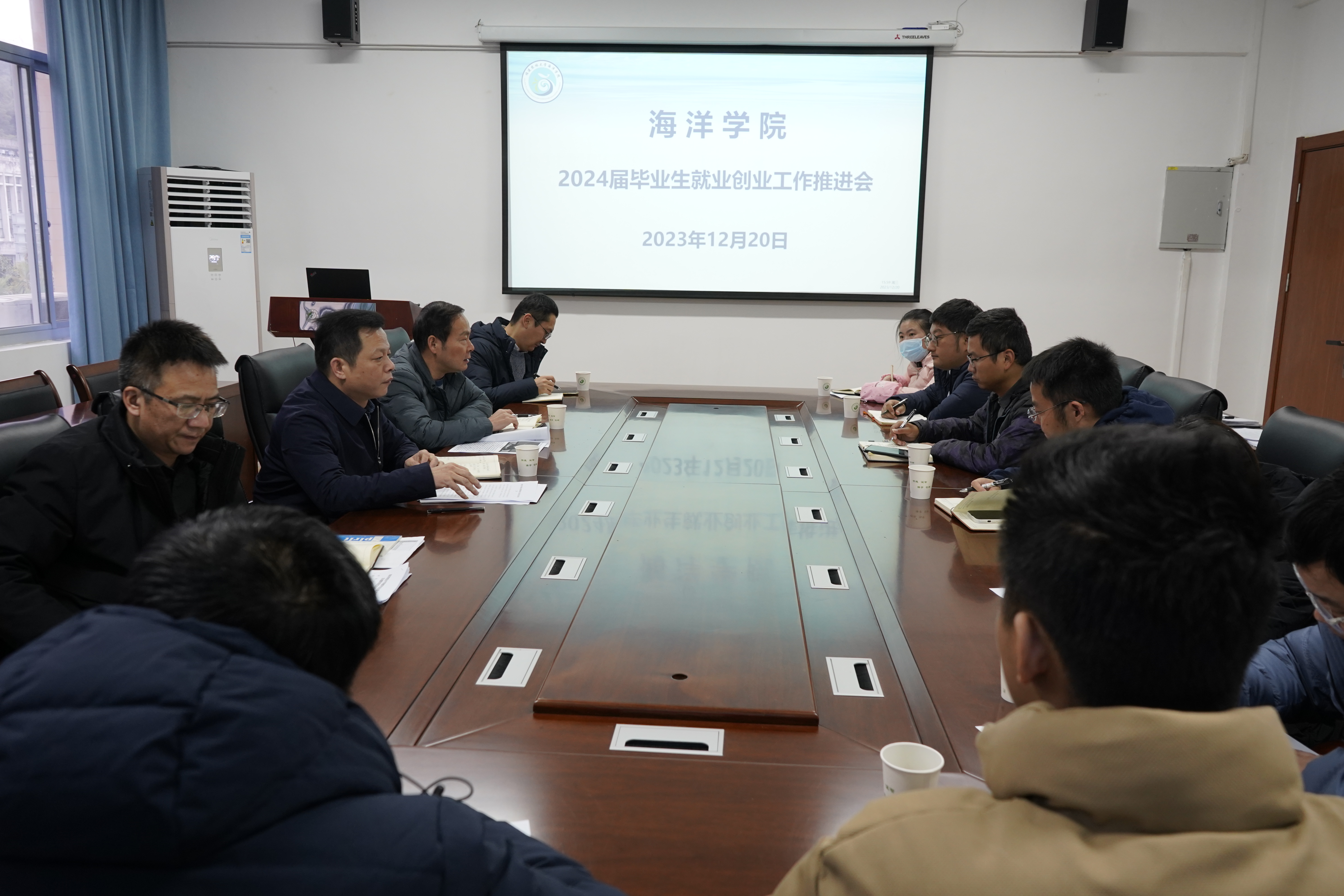 12月20日下午,海洋学院在学院501会议室召开2023届毕业生就业创业工作推进会。学院领导班子成员黄毅军、陈新华、余建晖、赵超,研究生导师代表、毕业班班主任、全体辅导员和行政干部等参加。会议由学院党委书记黄毅军主持。