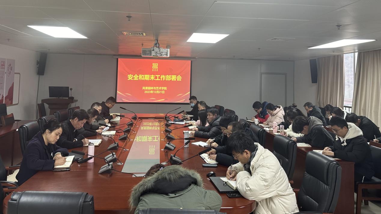 12月21日上午,风景园林与艺术学院在旗山综合楼11楼会议室召开校园安全和期末工作部署会,会议由院党委书记雷国铨主持,学院领导班子成员、各系主任、科级干部及全体辅导员参会。