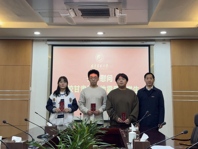 会上,曾华平代表校党委向受灾学生代表发放慰问金。