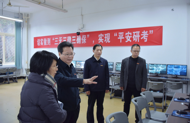 12月22日上午,校党委书记王建南带队深入保密室、考生服务站、监控总控室、视频监控室等,对我校2024年硕士研究生招生考试考前各项准备工作进行细致检查,并召开专题会议对考前相关工作提出具体要求。校党委副书记曾华平陪同。