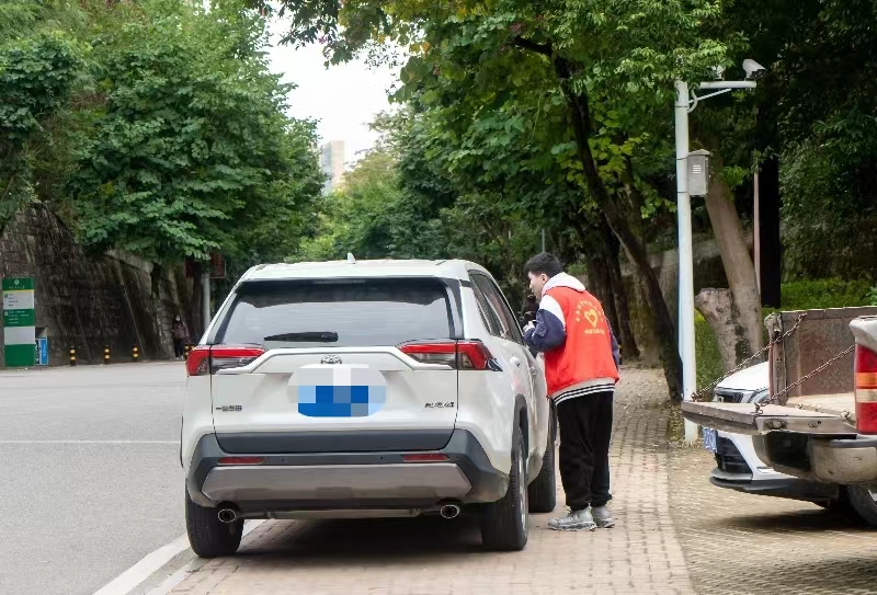 学院每天早中晚各安排6名志愿者进行停车督导。志愿者们按照要求摆放好乱停乱放的电动车,有效解决了原先车辆乱停乱放和占用道路的问题。同时,志愿者们温情提醒开车入校司机规范停车,对未规范停放车辆的开车司机进行劝阻,倡议入校车辆减速慢行,停文明车,做文明人。