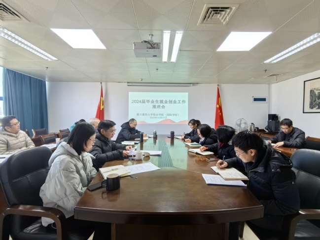 12月25日上午,为传达部署落实学校2024届毕业生就业创业工作推进会精神,戴尔豪西大学联合学院(国际学院)在综合楼901召开会议,会议由学院党委副书记刘敏主持,学院全体党政班子、教务办、外语系教师和全体政工干部参加会议。
