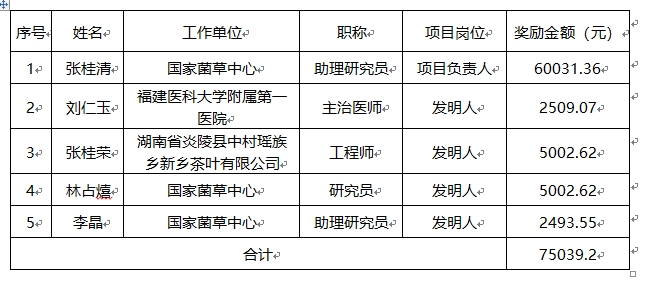 专利名称1:一种灵芝流浸膏的集成提取方法;申请日:2017年05月09日;授权日:2020年12月29日;专利号:ZL201710322846.0;发明人:张桂清、刘仁玉、张桂荣、兰思仁、林占熺。