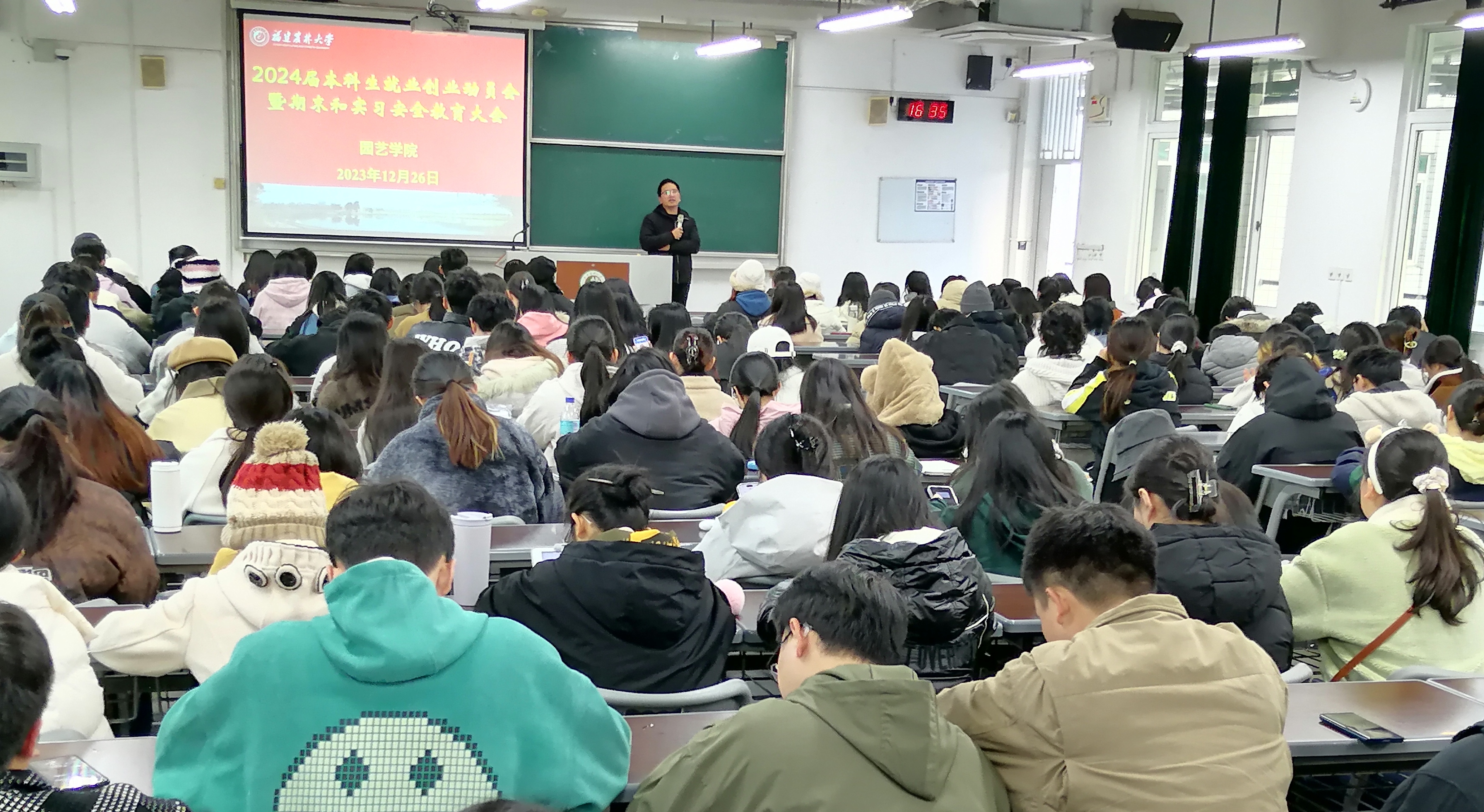 为扎实做好2024届本科毕业生就业创业指导与服务工作,12月26日下午,园艺学院在田家炳楼307室召开2024届本科生就业创业动员大会暨期末和实习安全教育大会。会议由2024届本科生辅导员李万里主持,全体毕业班本科生参加会议。