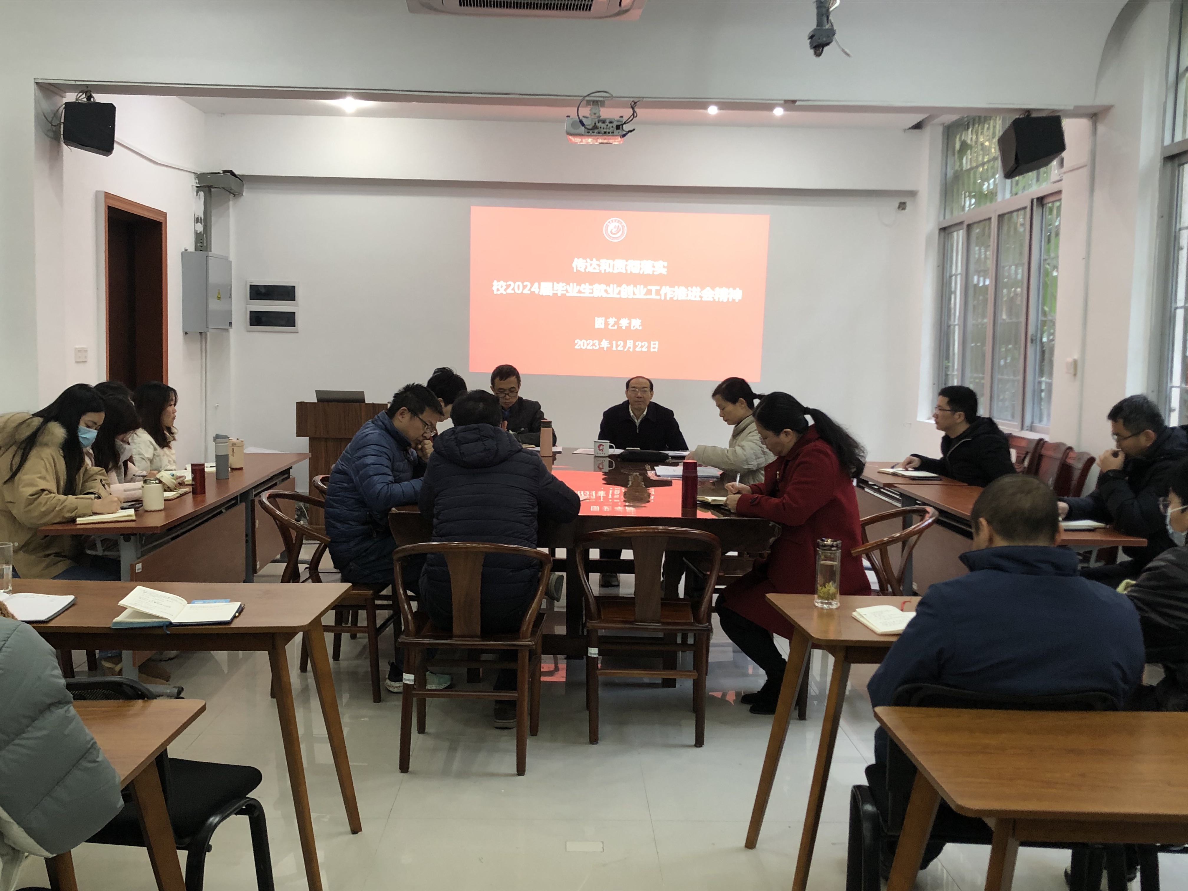 12月22日,园艺学院在学院一楼会议室召开2024届毕业生就业创业工作推进会,传达学校2024届毕业生就业创业工作推进会会议精神,学院党政领导班子成员、各系部所负责人、毕业班辅导员参加会议。