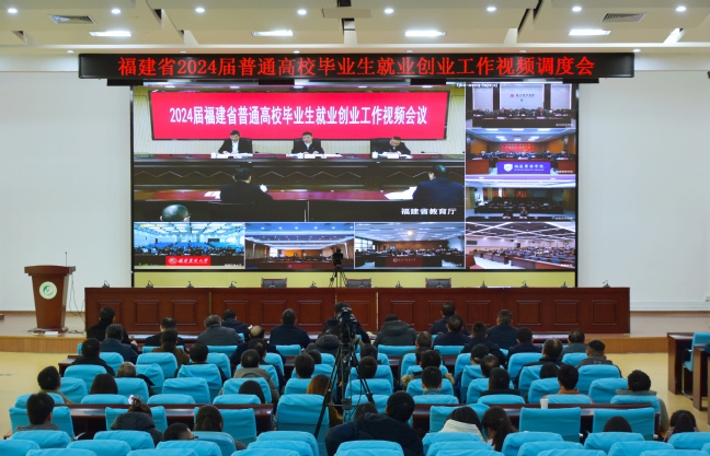 12月25日下午,2024届福建省普通高校毕业生就业创业工作视频调度会议以线上和线下相结合的方式召开,我校在禧强楼学术报告厅设分会场,校党委书记王建南、校长兰思仁、校党委副书记曾华平,校就创领导小组成员单位负责人,各学院书记、院长、副书记,就创业联络员、毕业班辅导员参加会议。视频会后,我校接着召开2024届毕业生就业创业工作推进会,兰思仁就做好学校毕业生就业创业工作进行再动员再部署再强调,会议由曾华平主持。