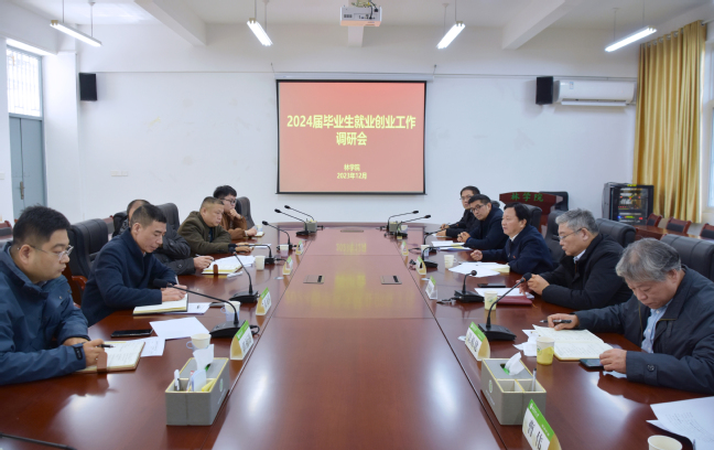 当天上午,校长兰思仁、副校长唐振鹏到林学院开展毕业生就业创业工作调研,听取了学校和学院关于2024届毕业生就业创业工作进展情况的汇报,针对学院提出的就业创业工作中的重点难点问题进行逐一分析并提出解决方案,对下阶段工作重点进行了部署,强调要统一思想、坚定信心,千方百计促进2024届毕业生高质量充分就业。党政办、学工部、教务处、研究生院、学生创新创业中心负责人及林学院领导班子成员、毕业班辅导员参加调研座谈。