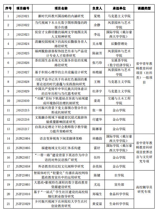 开云网页版2023年度福建省教育系统哲学社会科学研究项目立项名单: