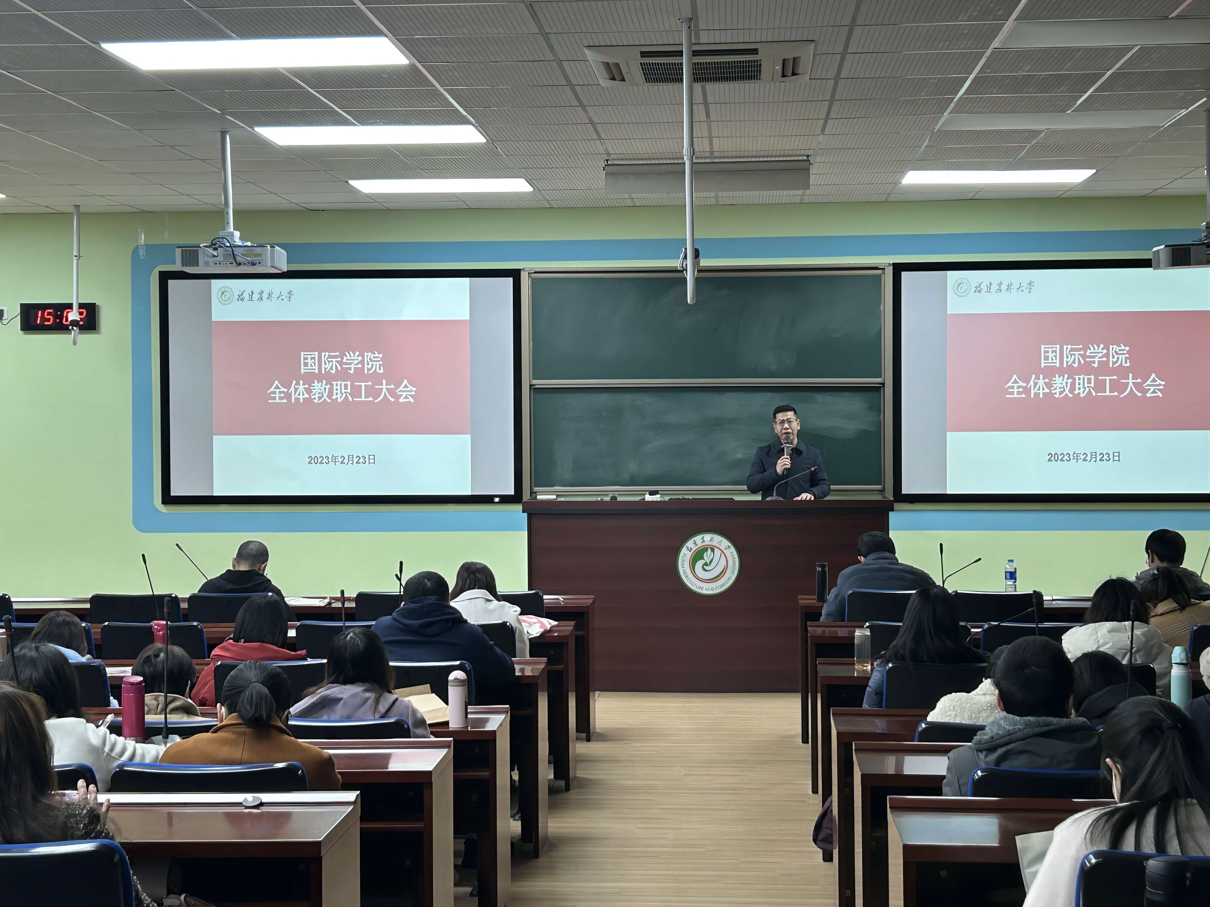2月23日下午,国际学院在禧强楼206召开新学期教职工大会,贯彻落实学校2023年春季学期工作会议暨“深学争优、敢为争先、实干争效”行动动员部署会精神。学院全体教职工参加会议,会议由院长吴锦程主持。