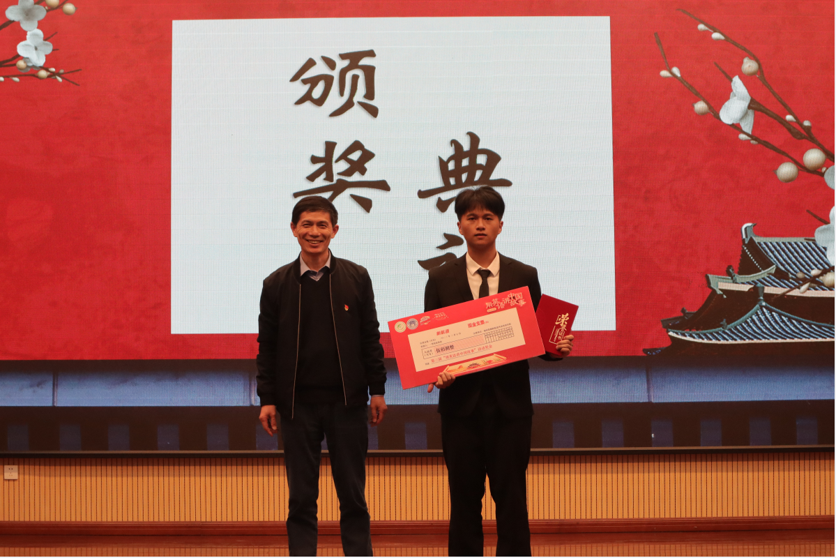 赛场上,各位选手围绕“中华文化,世界传播”主题,选取推荐篇目或自撰演讲稿,讲述他们眼中的“中国精神”。经激烈角逐,2021级英语专业黄宇坤以90.8分佳绩荣获一等奖;2022级生物工程(生物制药方向)邓玮琪、2022级英语专业王歆荣获二等奖;2021级金融专业杨心怡、2022级少数民族预科班冯珂萱、2022级林学专业陈雅铭荣获三等奖;其余11位同学获得优秀奖。