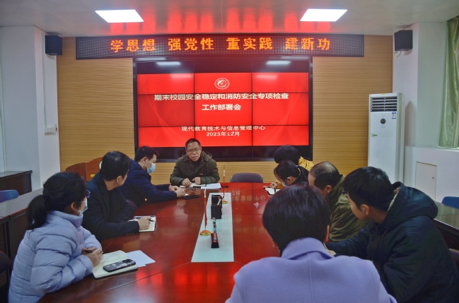 12月27日,信息中心召开期末校园安全稳定和消防安全专项检查工作部署会,传达落实学校校园安全和期末寒假工作部署会精神,以及2023年学校消防安全专项督导检查工作安排。会议由中心主任曾海滨主持。