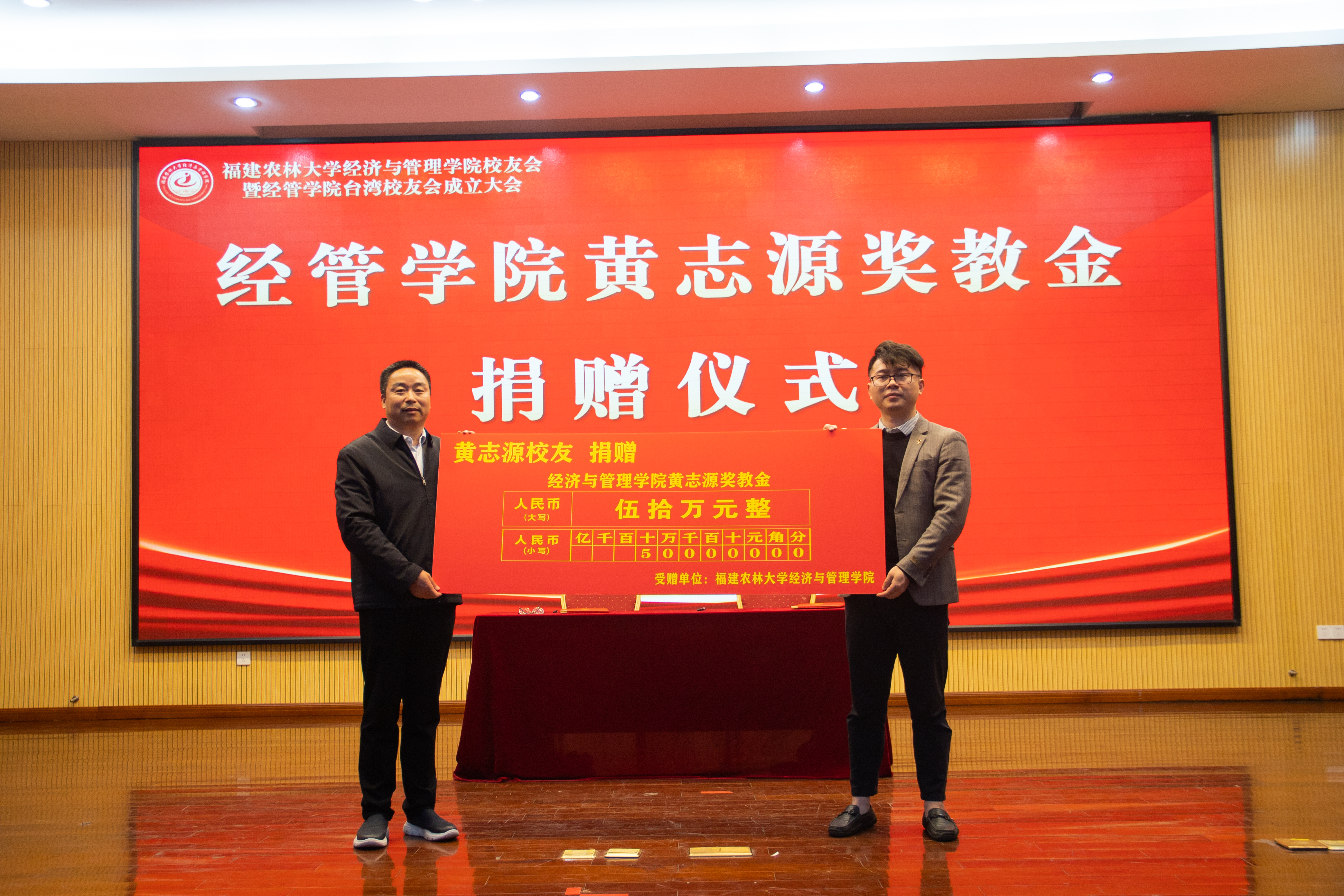 近日,为祝贺经管学院校友会暨经管学院台湾校友会成立,助力学院高质量发展,黄志源校友捐款50万元设立经管学院黄志源奖教金。黄志源表示:“设立经管学院黄志源奖教金,尽一点绵薄之力,是我们作为莘莘学子为母院做的微薄贡献,也是我们作为莘莘学子应该有的责任和担当。”
