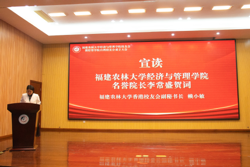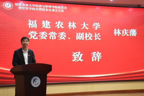 林庆藩副校长代表学校对经济与管理学院校友会暨经管学院台湾校友会的成立表示热烈祝贺。他介绍了学校的发展现状和取得的成绩,希望校友会作为紧密联结校友的桥梁和纽带,能够不断促进校友自身、学校共同进步与发展,推动母校与各界合作交流,服务社会,希望校友会能继续坚持以服务校友为本,整合汇聚校友资源,服务聚心,联络聚人,合作聚力,不断搭建交流互动的平台,彰显农林大人的社会责任与担当。