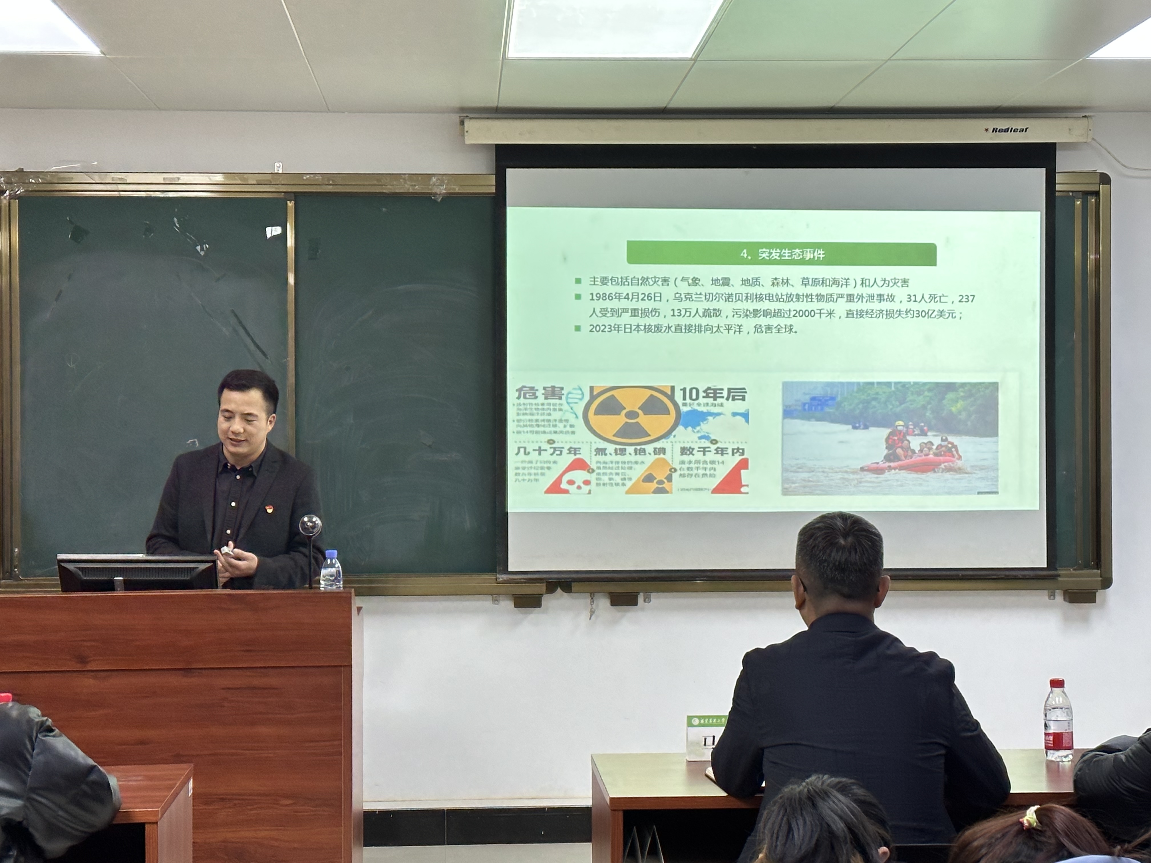 揭牌仪式结束后,马克思主义学院老师黄登良以《围绕维护生态安全与青年使命担当》为主题,为研习社学员授课。他以坚持总体国家安全观为背景,围绕生态安全,结合开云网页版师生践行绿色生态理念的具体案例,阐释了当代青年大学生的使命担当。