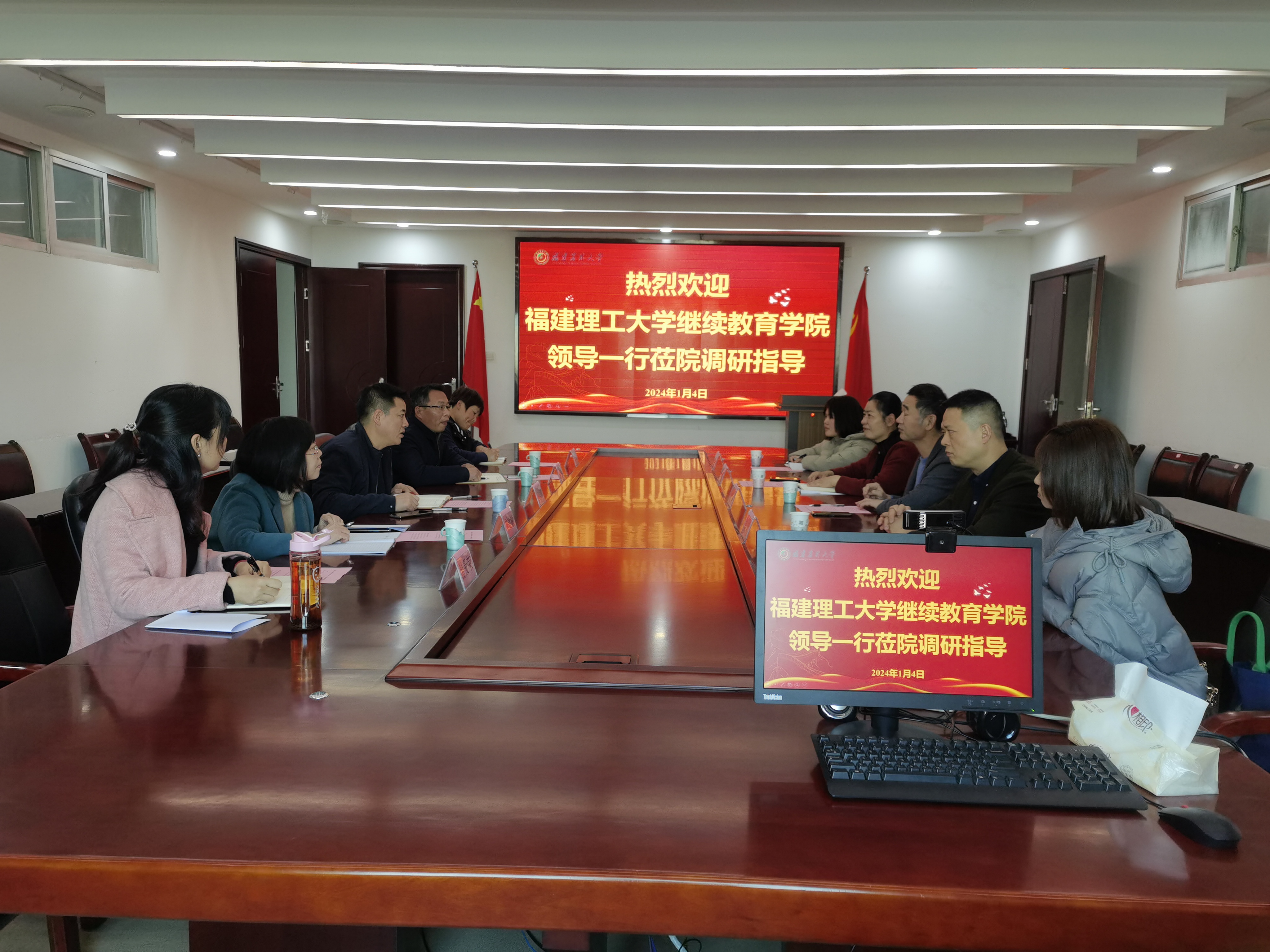 1月4日下午,福建理工大学继续教育学院院长邓毓旺一行4人莅院调研,学院执行院长苏时鹏、副院长黄顺容、继续教育与培训部相关负责人参加座谈会。苏时鹏主持会议。