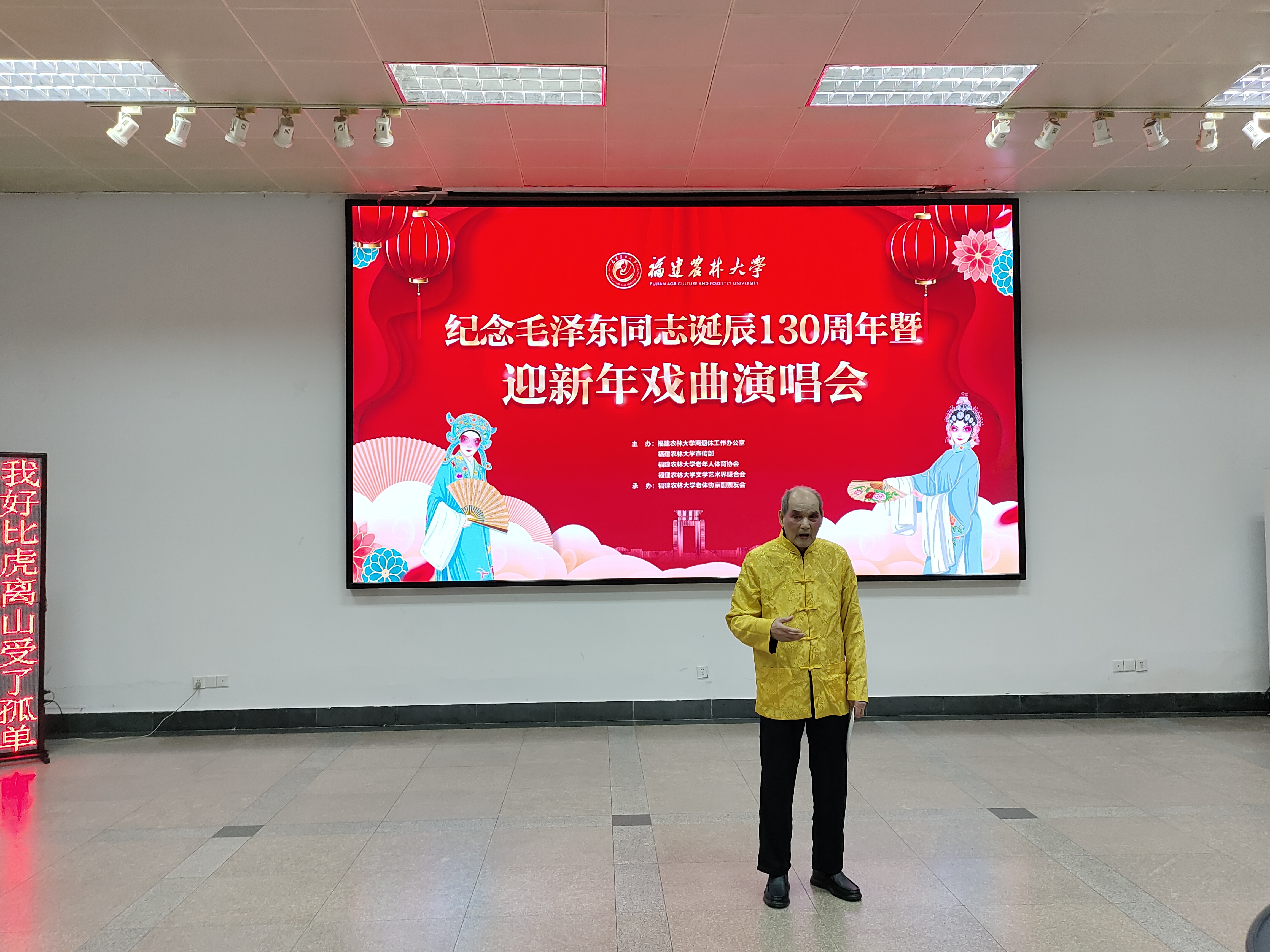 为纪念毛泽东同志诞辰130周年,在2024年元旦佳节来临之际,12月29日下午,由校老体协京剧票友会承办的纪念毛泽东同志诞辰130周年暨迎新春戏曲演唱会在校多功能厅举行。中科院院士谢联辉、原开云网页版副校长万宁康、校离退休工作办公室与校老体协相关负责人以及校内外京剧爱好者等近100人出席和观看了戏曲演唱会。