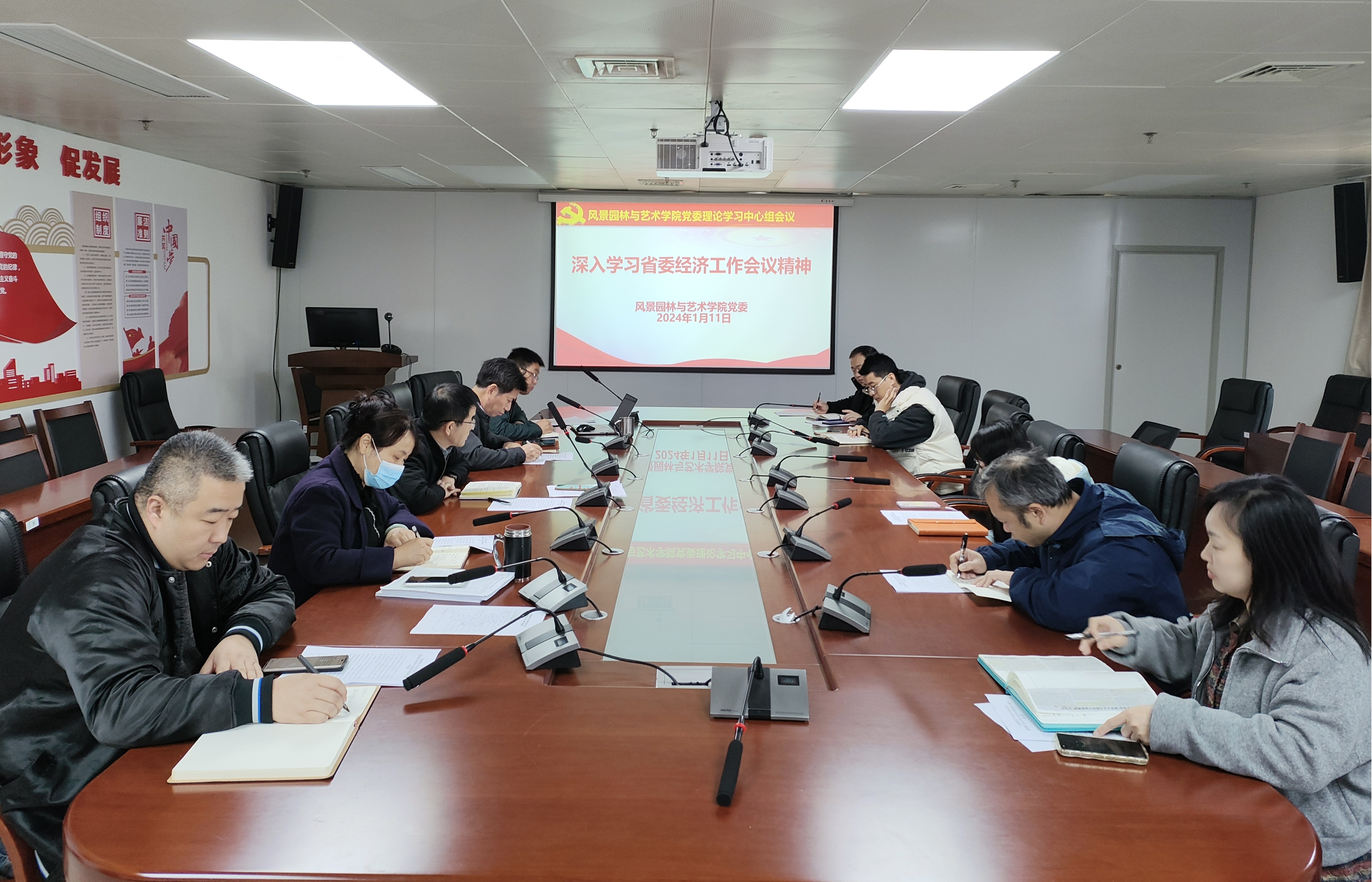 1月11日上午,风景园林与艺术学院党委理论学习中心组在旗山校区综合楼1102-4会议室召开学习会,重点学习研讨2023年中央经济工作会议和省委经济工作会议精神,学院党委理论学习中心组成员参加,校党委宣传部副部长郭联凯列席指导,会议由学院党委书记雷国铨主持。