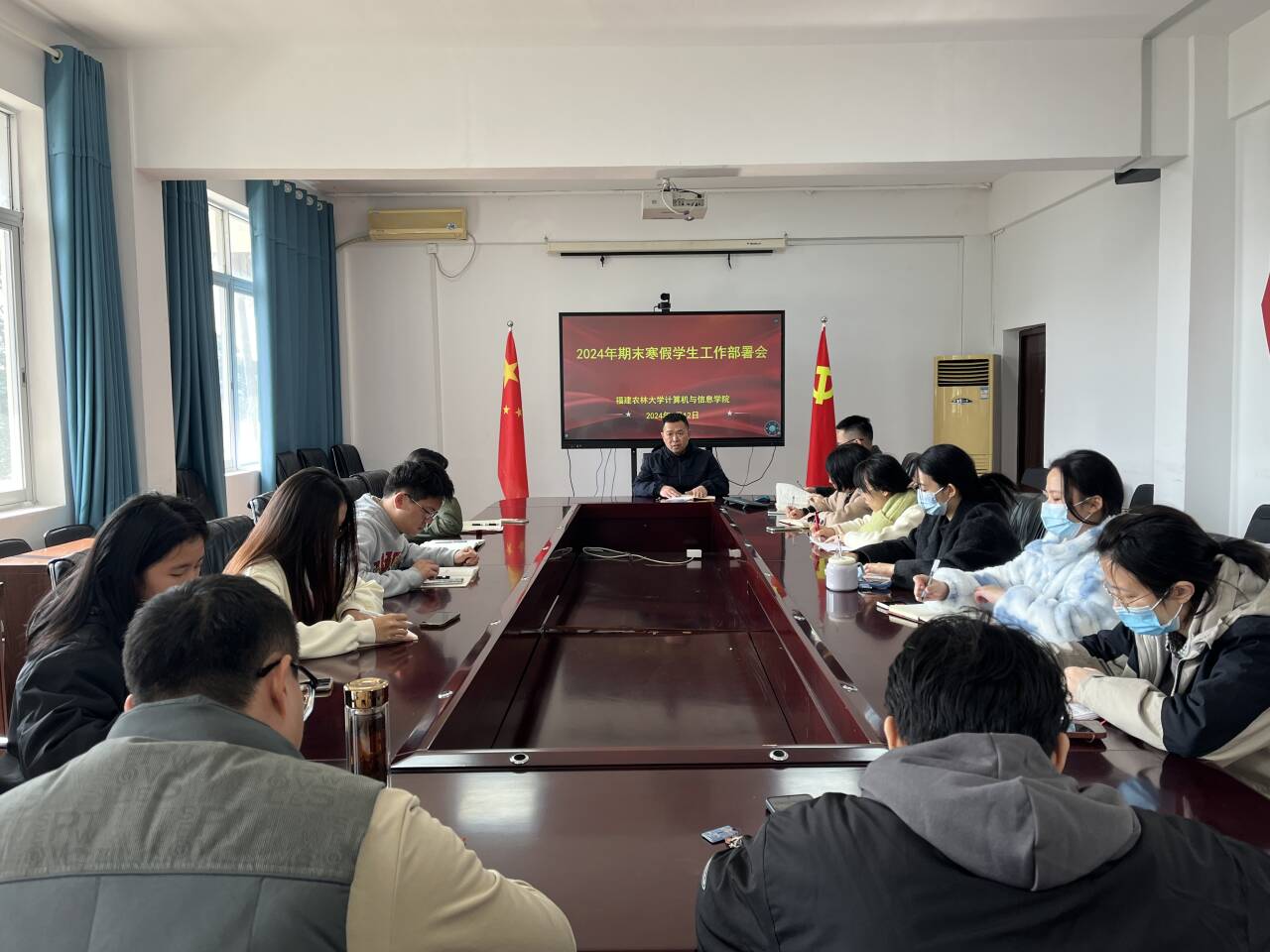 1月12日,计算机与信息学院在学院302会议室召开2024年期末寒假学生工作部署会,传达学校关于做好2023-2024学年第1学期期末及2024年寒假有关工作的通知,并结合近期上级工作重点和学院具体实际研究部署了学院期末及寒假有关学生工作。计算机与信息学院党委副书记张明辉主持会议。学院全体辅导员参加会议。