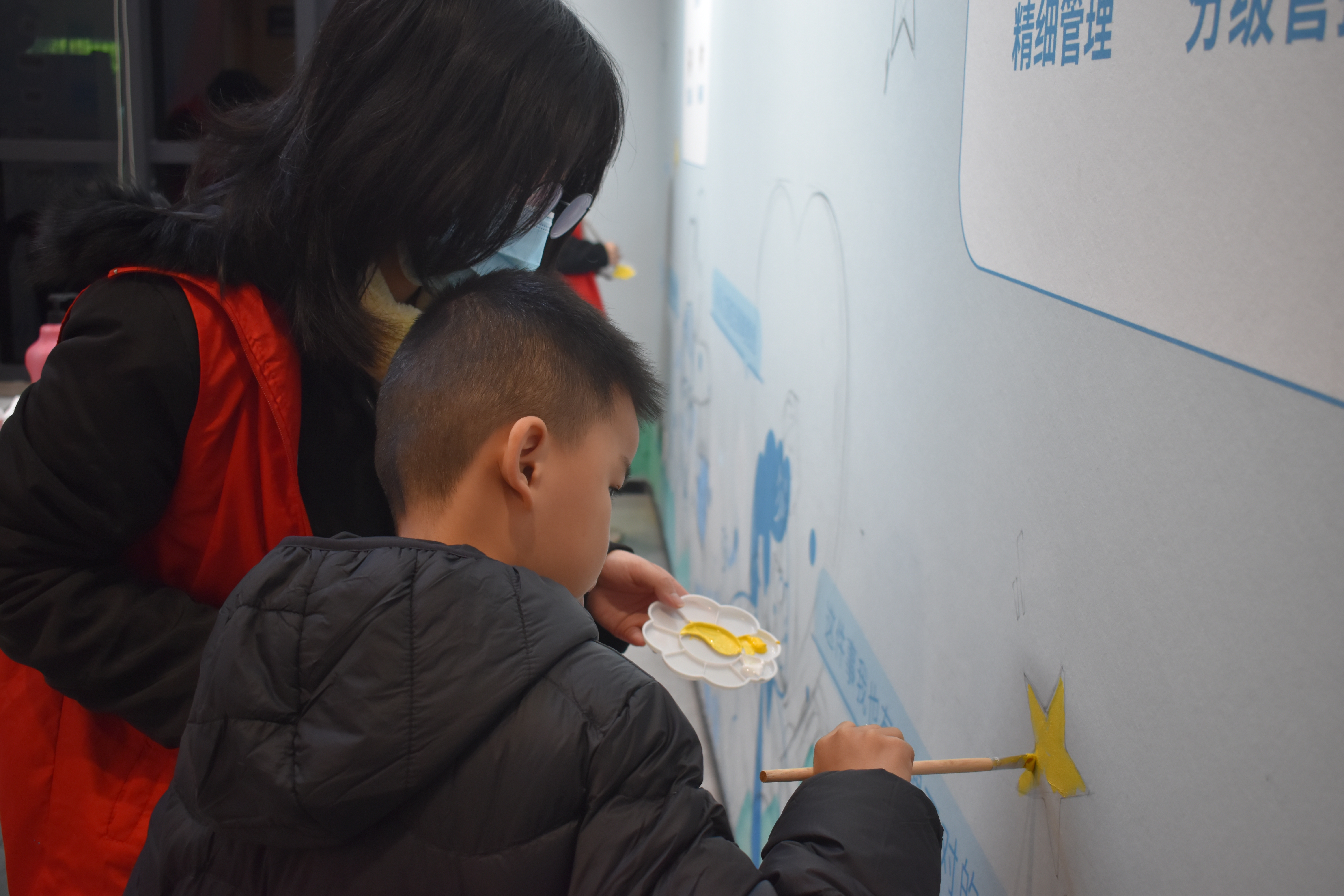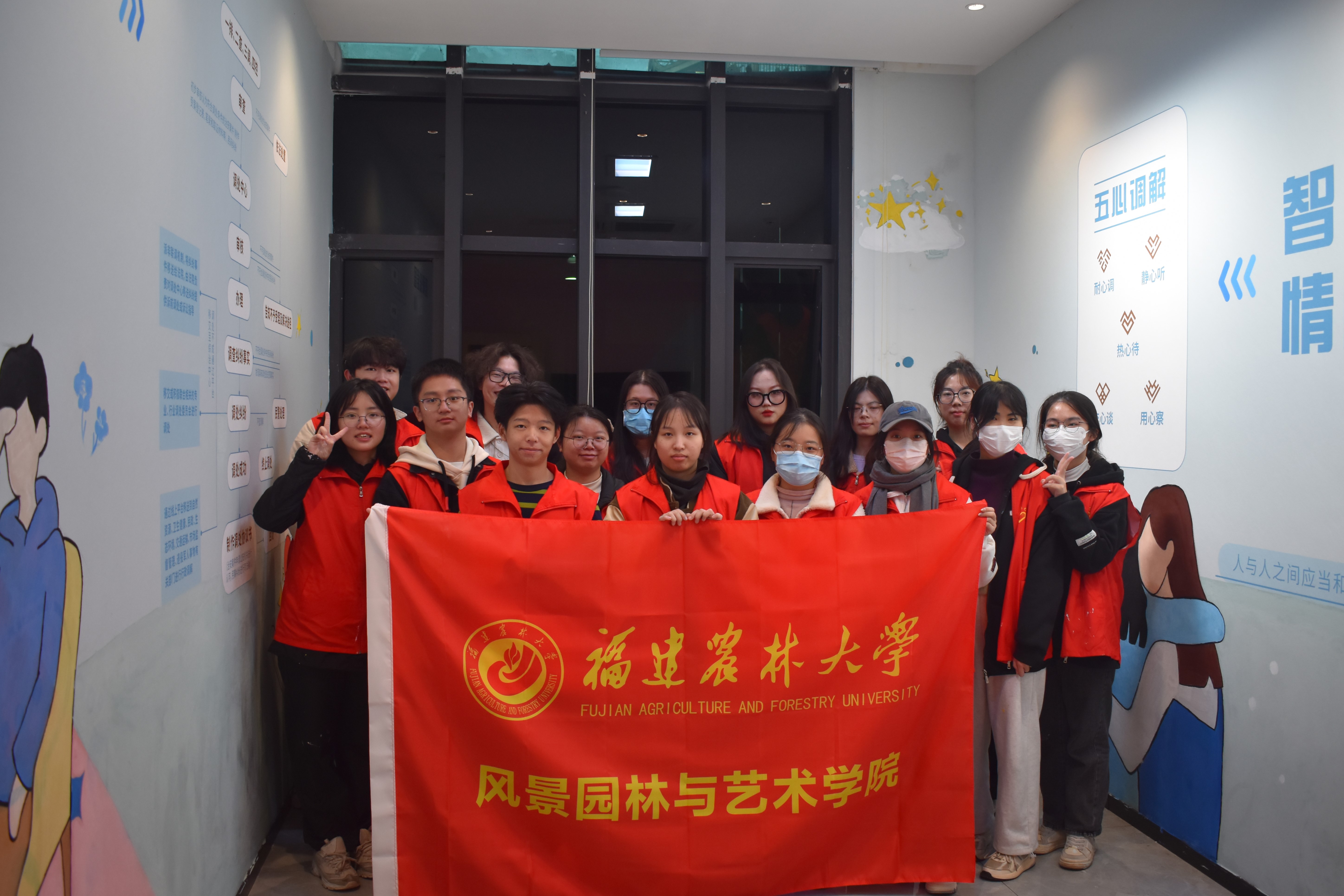 1月13日,风景园林与艺术学院 “彩绘青春”手绘志愿服务队来到仓山区金山街道中天社区,为社区活动中心绘制精美墙绘。