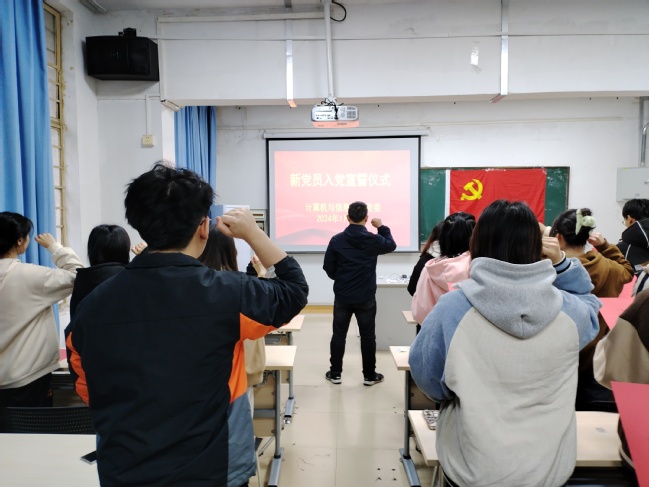1月15日下午,计算机与信息学院党委在学院办公楼208室举行2023年下半年新发展党员入党宣誓仪式,2023年12月新发展的64名党员参加了入党宣誓仪式,入党宣誓仪式由学院党委副书记张明辉主持并领誓。