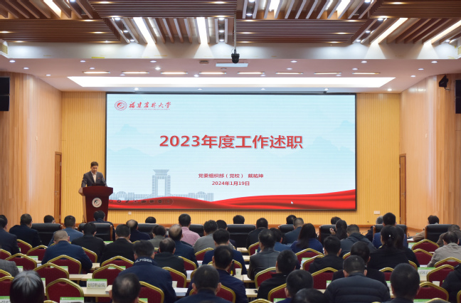 1月18日-19日,我校在金山校区常盛会议中心召开2023年度二级单位党委书记抓基层党建工作述职和二级单位主要负责人述职考核评议会,通过晒工作、亮业绩、受评议,进一步总结经验、查找问题、提出整改,更好地学习先进、取长补短、共同进步,推动学校实现高质量发展。校党委书记王建南、校长兰思仁及在家校领导,二级单位党委书记(含主持)、各学院行政主要负责人,机关教辅单位主要负责人,省级以上“两代表一委员”、教师党支部书记和学生代表参加会议。会议由王建南主持。