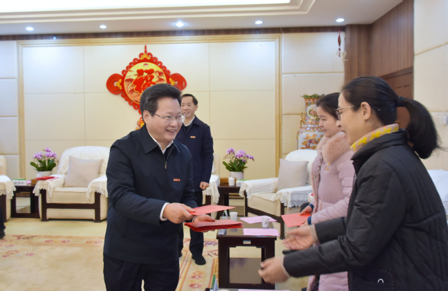 1月22日上午,校党委书记王建南、校长兰思仁、校党委副书记曾华平看望慰问困难师生党员代表,代表学校向他们送上慰问金,并致以新春的祝福和美好的祝愿。