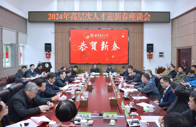 1月22日下午,我校在明德楼武夷厅召开2024年高层次人才迎新春座谈会。全体在家校领导与高层次人才欢聚一堂,交流工作、畅谈发展。座谈会由校党委副书记陈世奎主持。