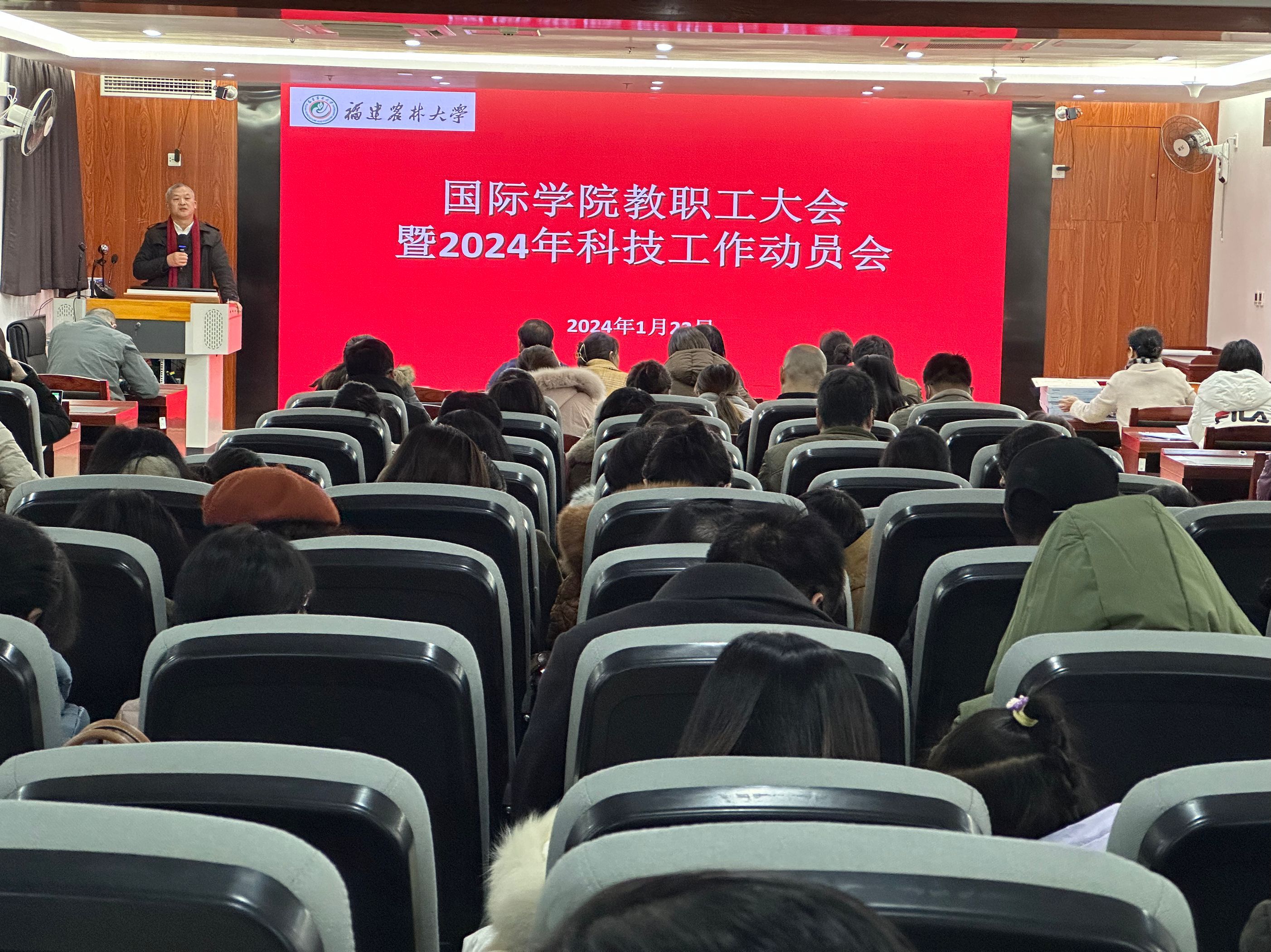 1月22日下午,戴尔豪西大学联合学院(国际学院)在旗山综合楼召开教职工大会暨2024年科技工作动员会,全体教职工参加会议,院党委书记林平主持会议。