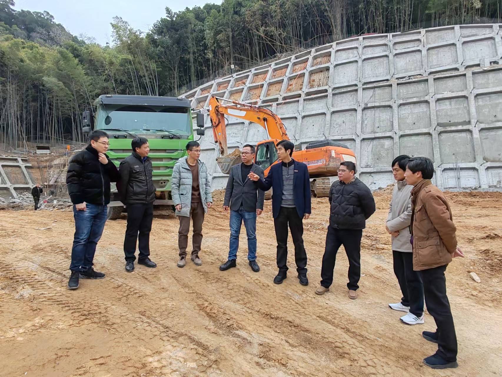 查看中心大楼“三通一平”和护坡建设项目进展情况