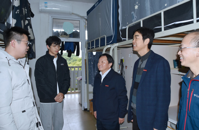 兰思仁一行先后深入金山校区食堂、第四变电站、国家菌草中心大楼施工现场、学生宿舍、测试中心、淮安派出所等地,详细了解各单位落实安全措施情况,对重点和薄弱环节提出指导性意见。在宿舍,校领导与留校学生亲切交谈,关心他们的假期生活安排,提醒增强防火和用电安全意识。校领导一行还看望慰问了坚守一线的淮安派出所干警。