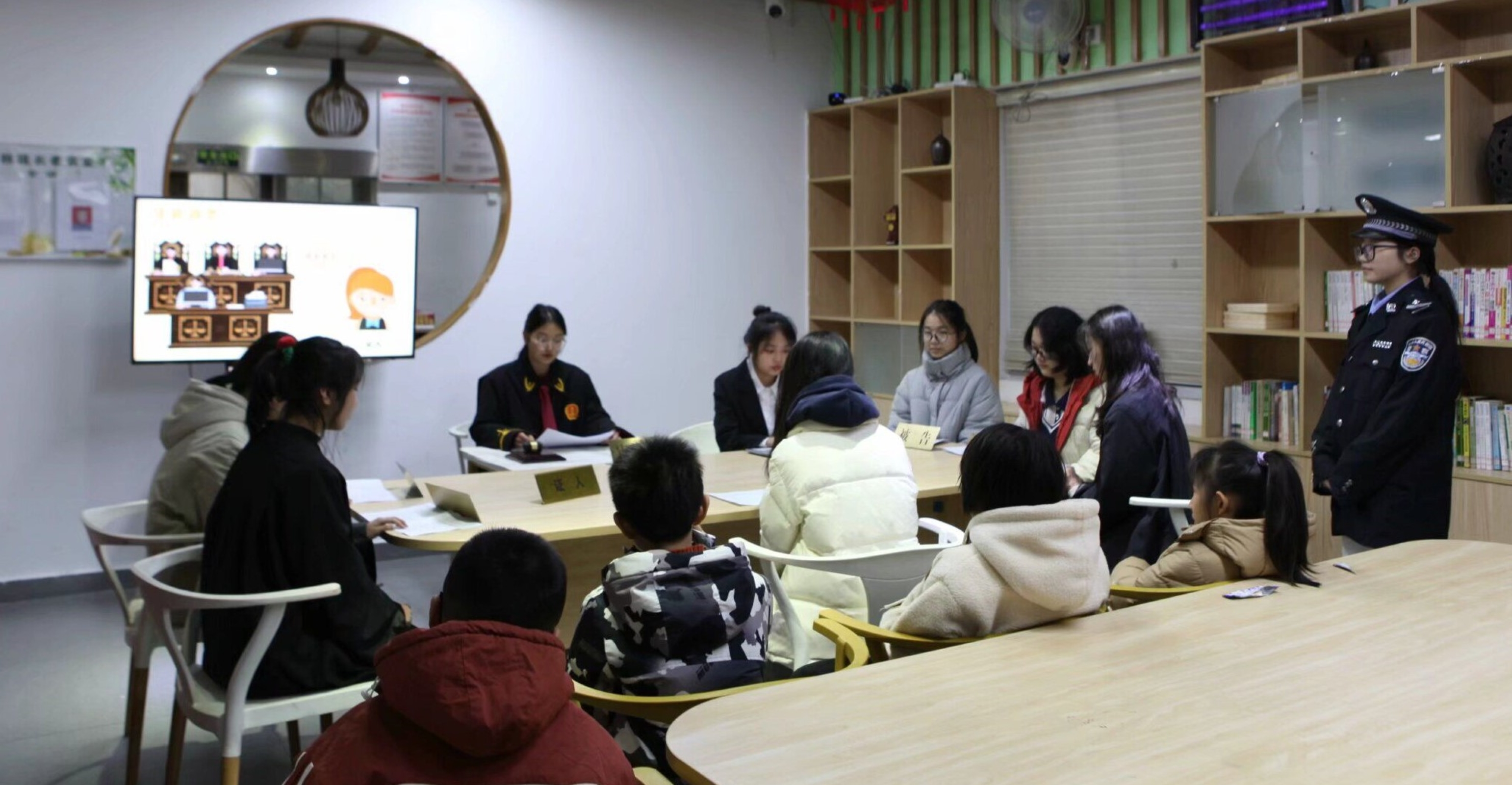 1月23日,实践队前往福州市鼓楼区竹林境社区,为社区小朋友们上了一堂别开生面的普法小课堂。课堂上实践队以一起未成年人侵权责任纠 纷为案例,完整呈现法庭调查、法庭辩论、法庭宣判等环节,生动演绎了当事人在法庭上举证、质证的全过程。课堂结束后,小朋友们还在现场体验法庭服装,“摇身一变”成为“小法官”、组建“小法庭”,用稚嫩的语言表达着孩童心中的法治梦想。