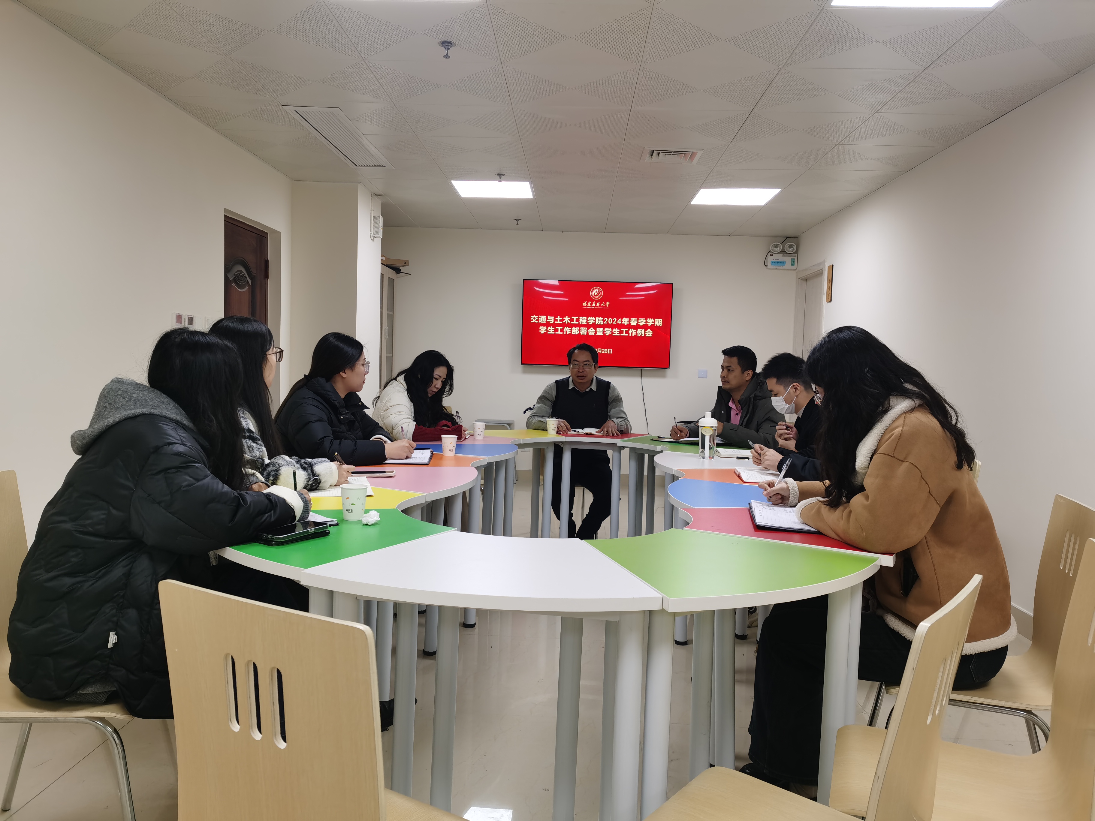 2月26日上午,交通与土木工程学院在旗山校区综合楼307召开春季学期学生工作部署会,传达学校2024年春季学期开学动员部署会、学工系统春季开学工作会议精神,结合学院实际进行交流研讨,部署新学期工作。会议由学院党委副书记李治洲主持,全体辅导员参加会议。