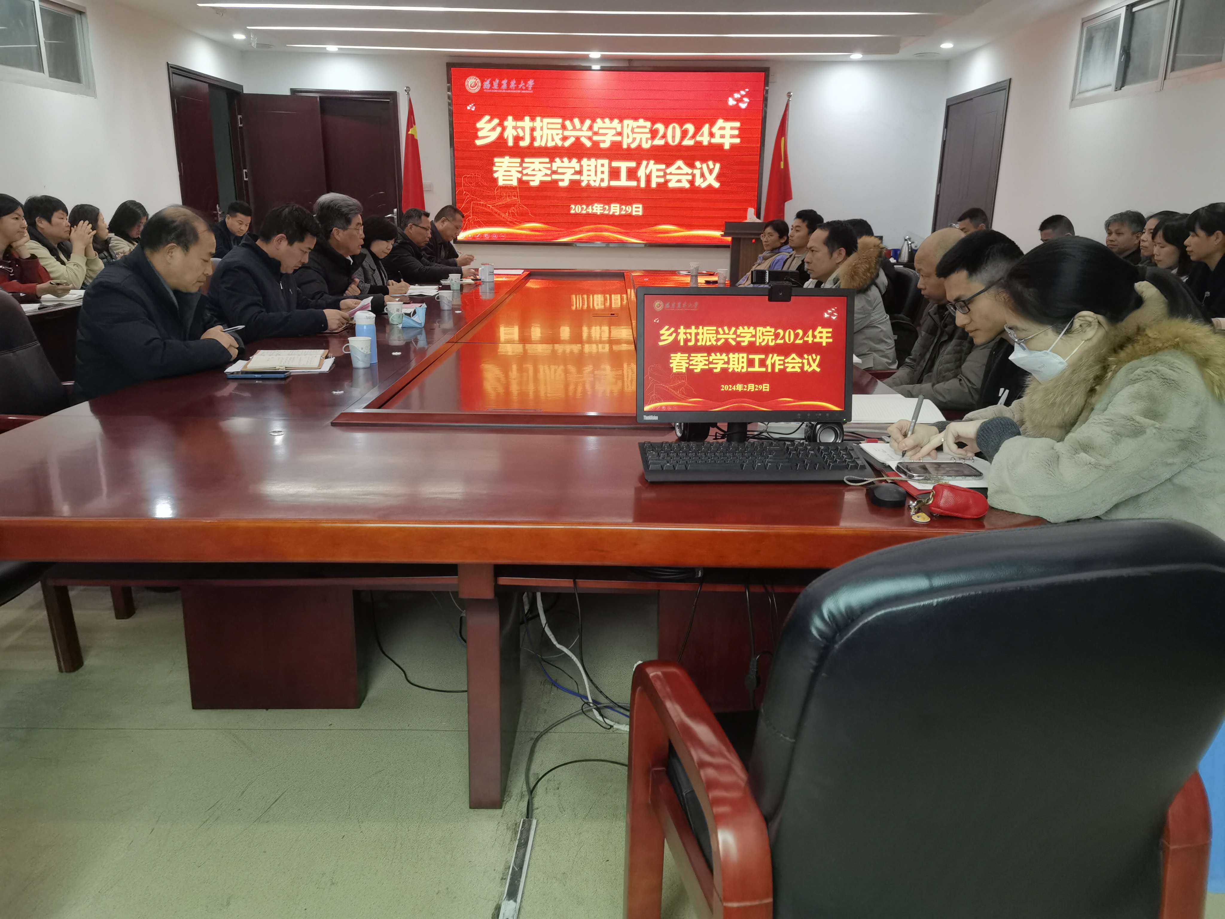 2月29日下午,乡村振兴学院在东苑512会议室召开2024年春季学期工作会议,传达学习学校2024年春季学期开学动员部署会精神,全院教职工参加会议。学院党委书记陈清西主持会议。