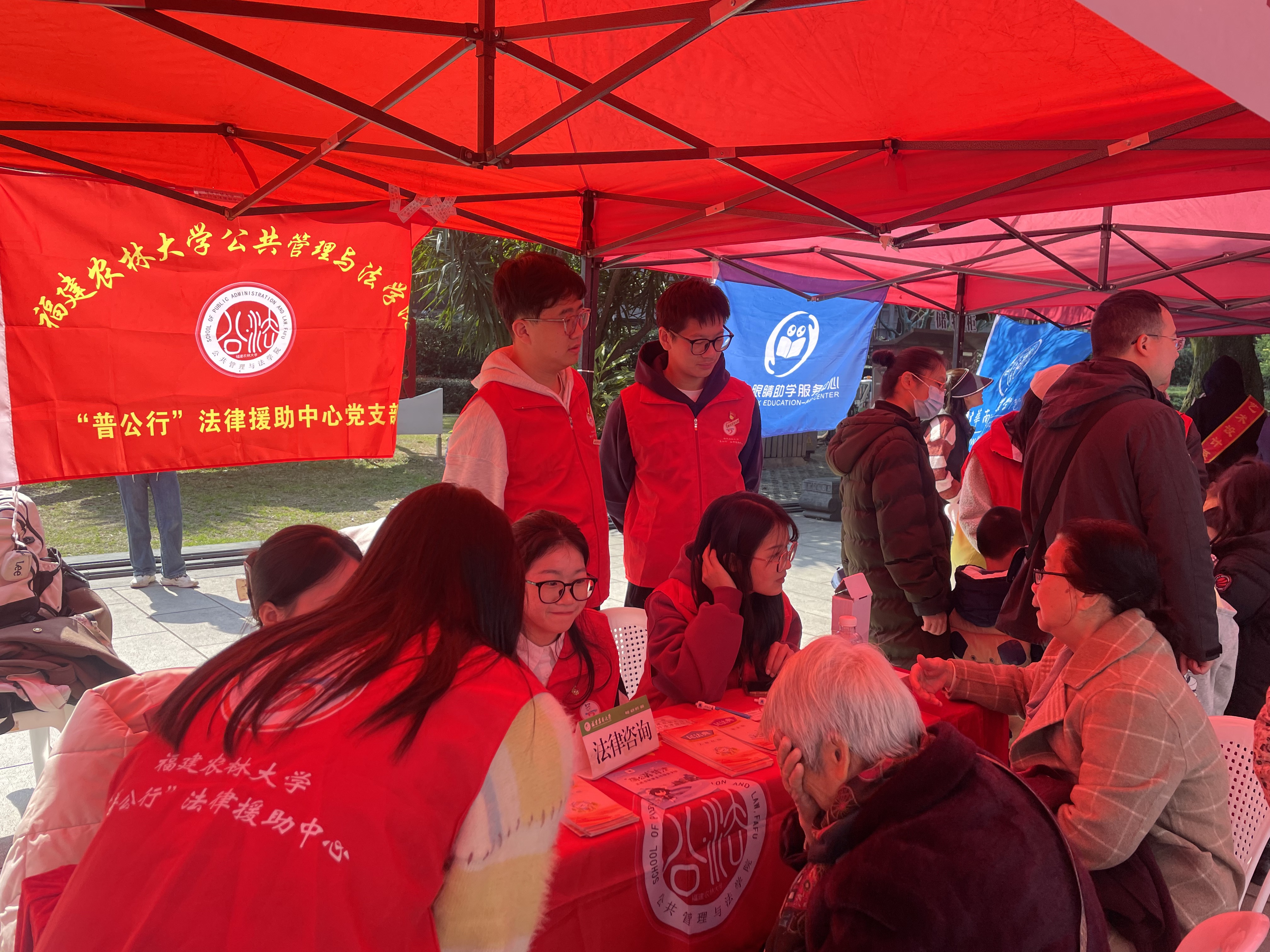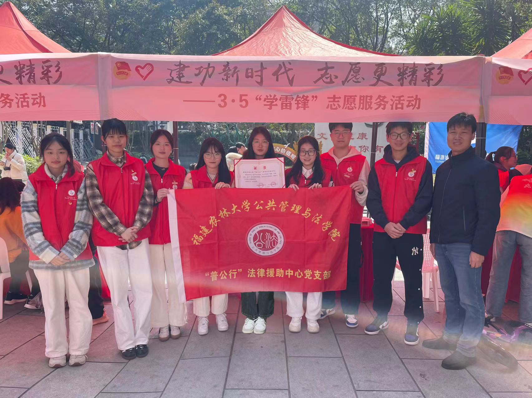 公共管理与法学院志愿服务项目——“普公行”法律援助中心志愿服务队荣获“示范青年志愿服务队”称号(全校仅一支)并亮相福建省3·5“学雷锋”志愿服务活动现场,为周边社区群众开展普法宣讲、法律咨询等服务,队员发放《民法典》普法册等宣传物料,通过互动对话了解群众法律问题,分析对策意见,及时记录并跟进反馈,努力以实际行动、火热实践将雷锋精神、志愿者精神弘扬在基层、践行在社区。