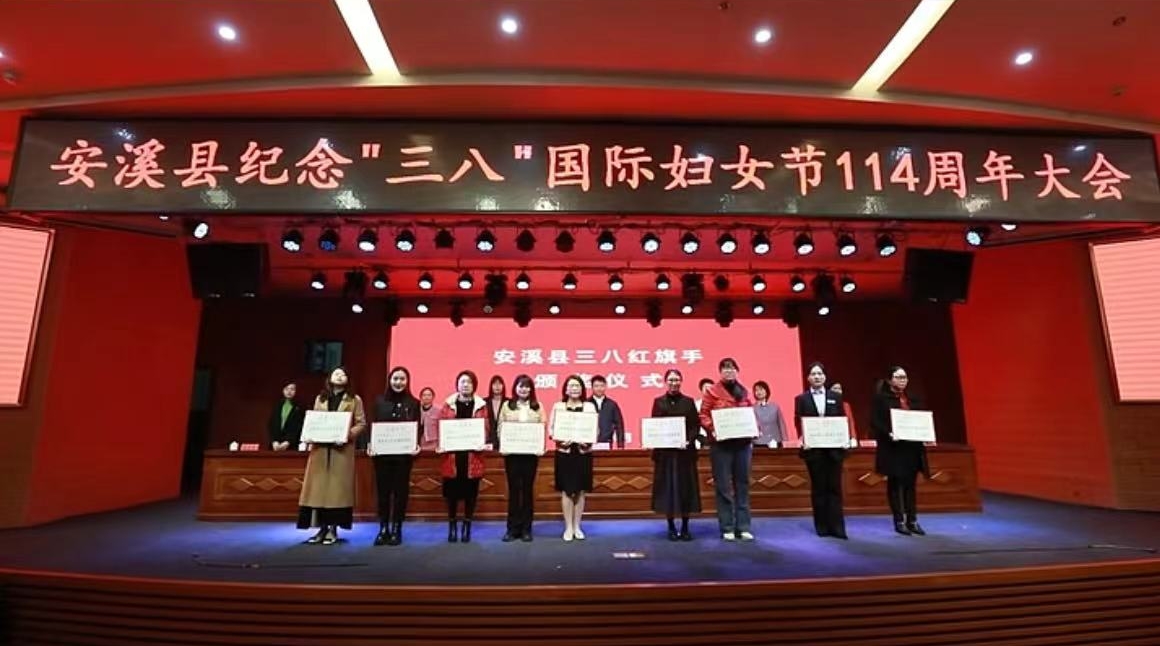 3月7日上午,安溪县妇女联合会召开安溪县纪念“三八”国际妇女节114周年大会暨表彰大会,数字经济院数字经济系副教授、硕士生导师徐淑媚被授予“安溪县三八红旗手”荣誉称号。