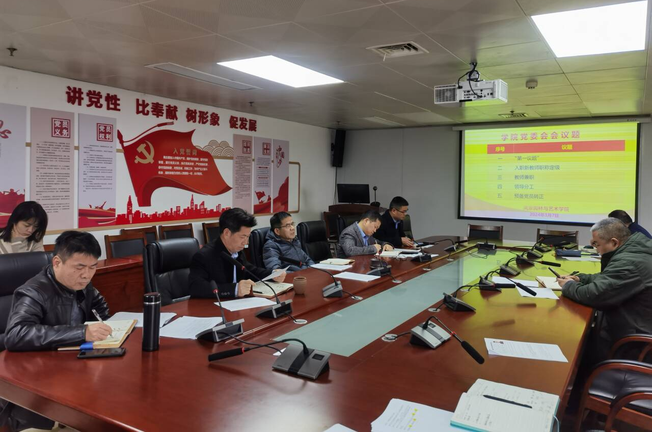 3月5日上午,风景园林与艺术学院党委在综合科1102-4会议室召开理论学习中心组学习会。会议由学院党委书记雷国铨主持,学院领导班子成员、院党政办主任和党委组织员参加会议。