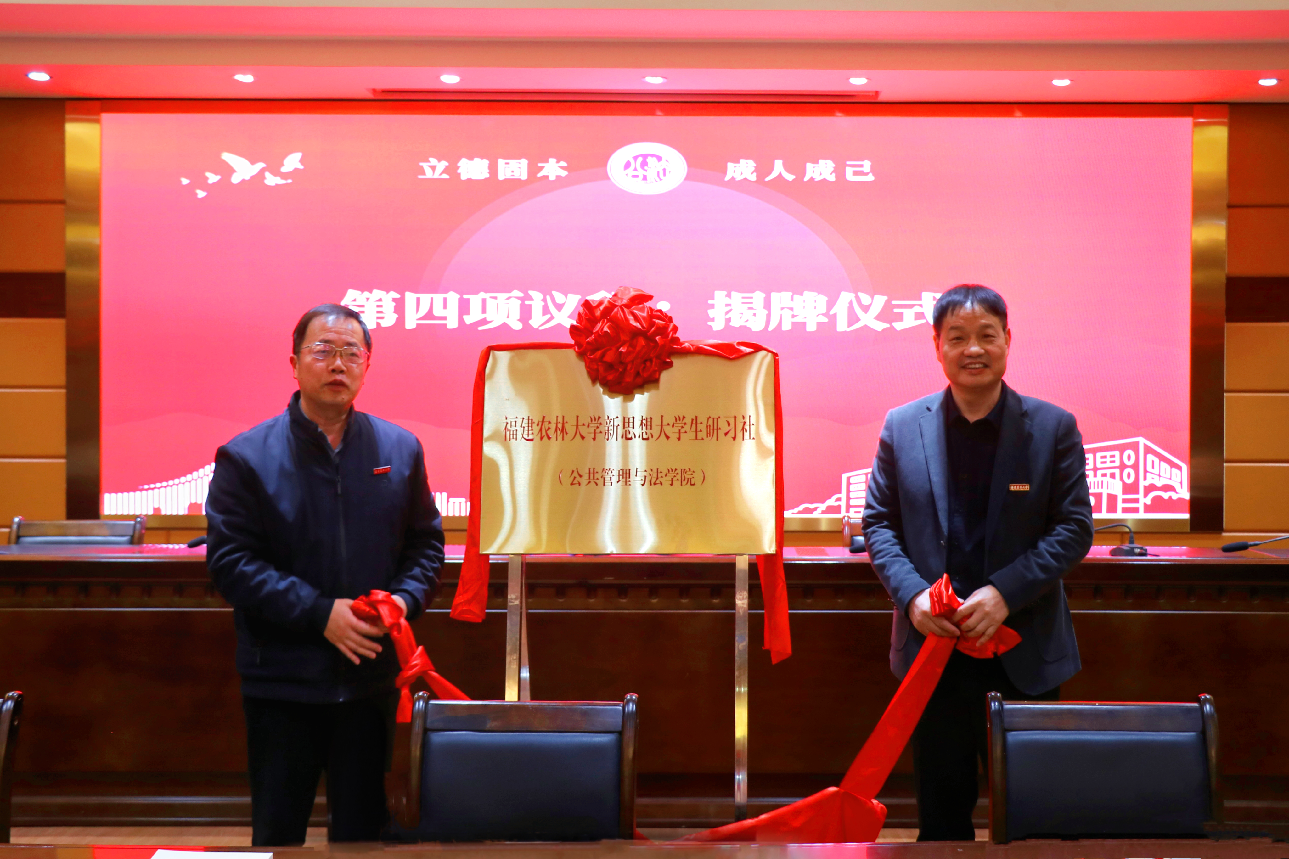 会上,曾起郁和郑龙章共同为大学生研习社揭牌,曾起郁还为大学生研习社学员代表赠送学习用书。